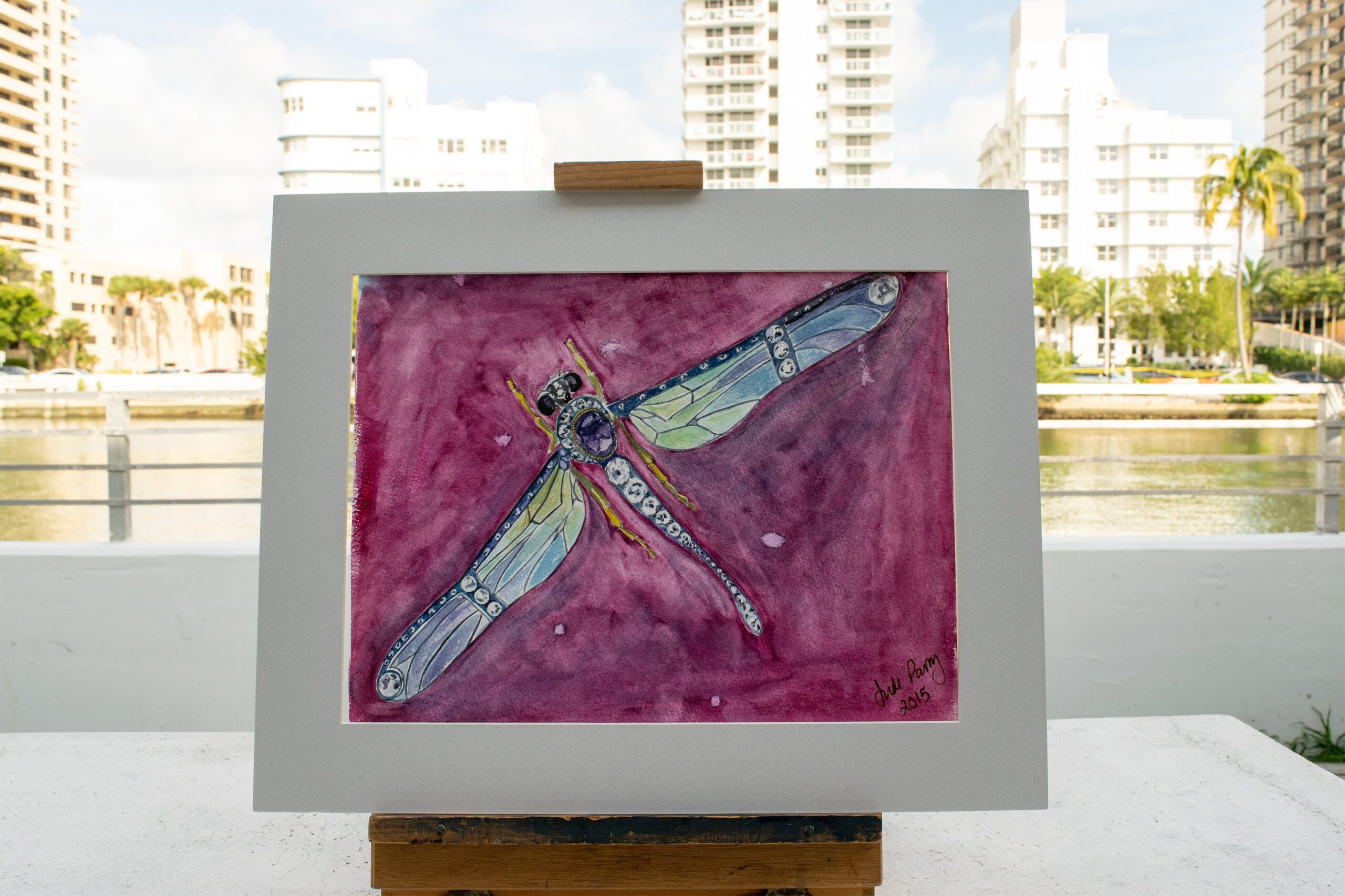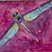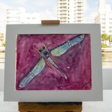Art Nouveau Art Deco Dragonfly Brooch on Mauve Watercolour on Paper 12″ x 15″ 2015 Mauve multicolour Gems & Precious Objects