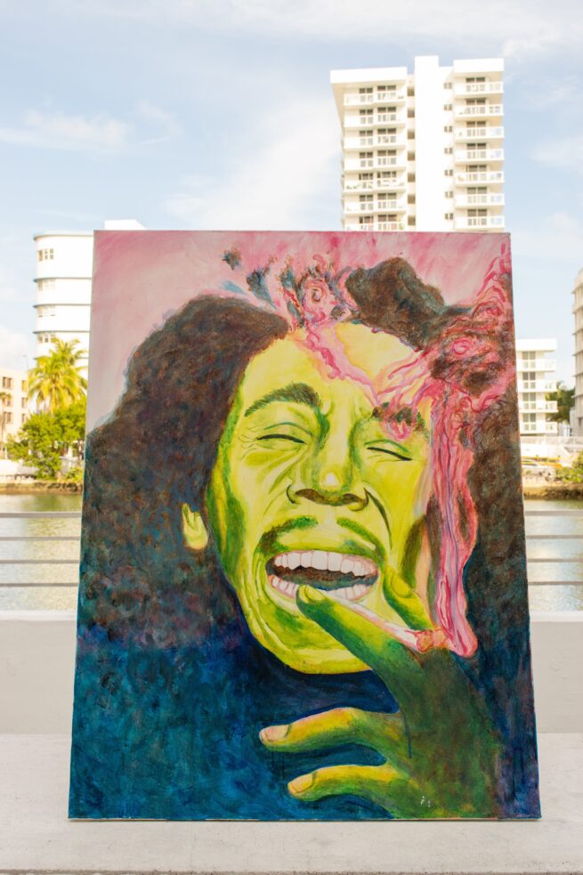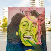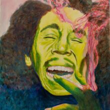 Bob Marley Jamaican Reggae star Bob Marley Acrylic on canvas 30″ x 40″ 2010 Green Indigo Pink Black