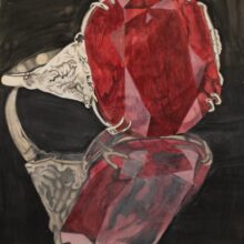 Carmen Lucia Ruby Ring Watercolour on Paper 18″ x 24″ 2007 Red Black Gems & Precious Objects