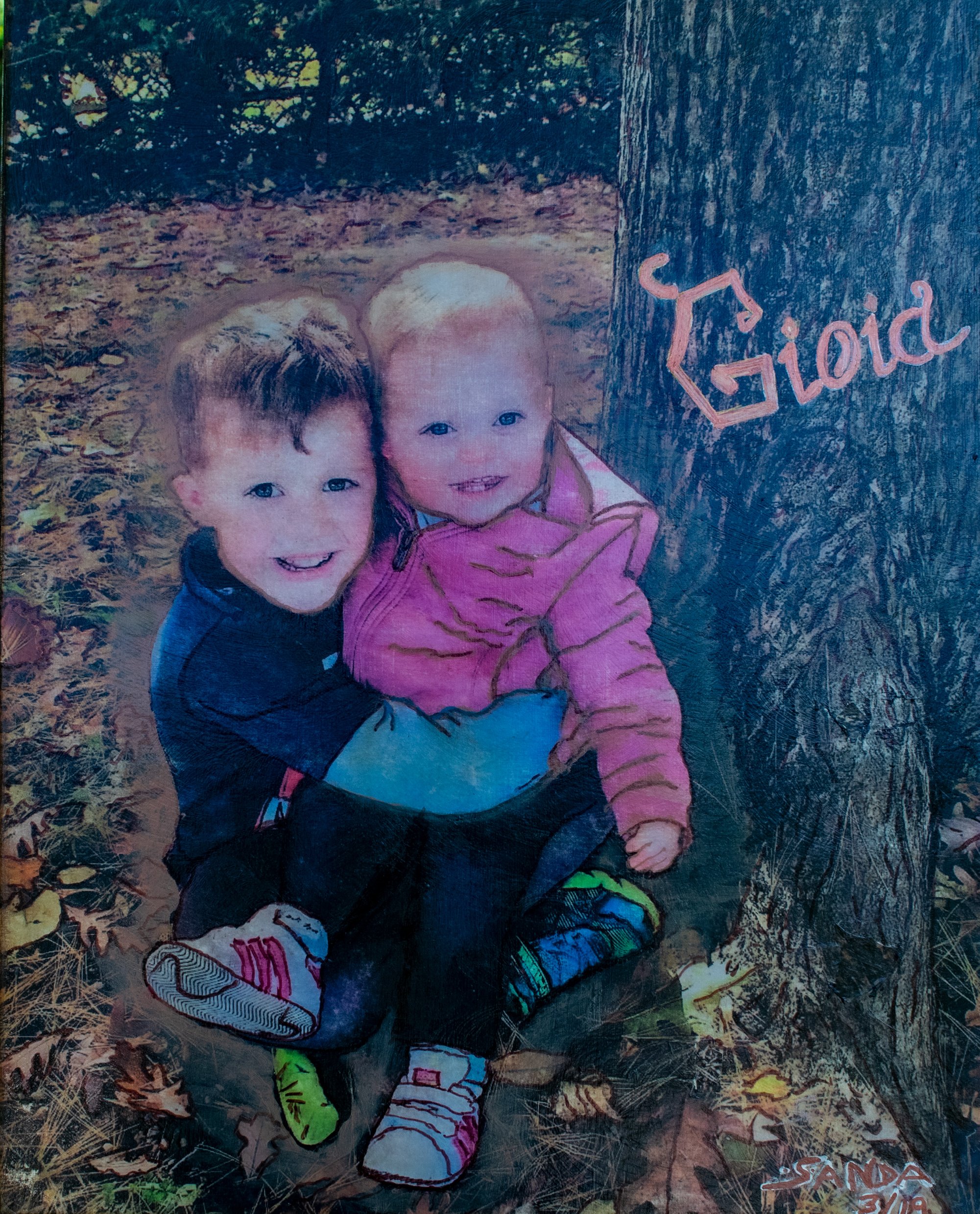 PERSONALIZED PHOTO TRANSFER ON CANVAS USING MIX MEDIA. 12″ X 16″
